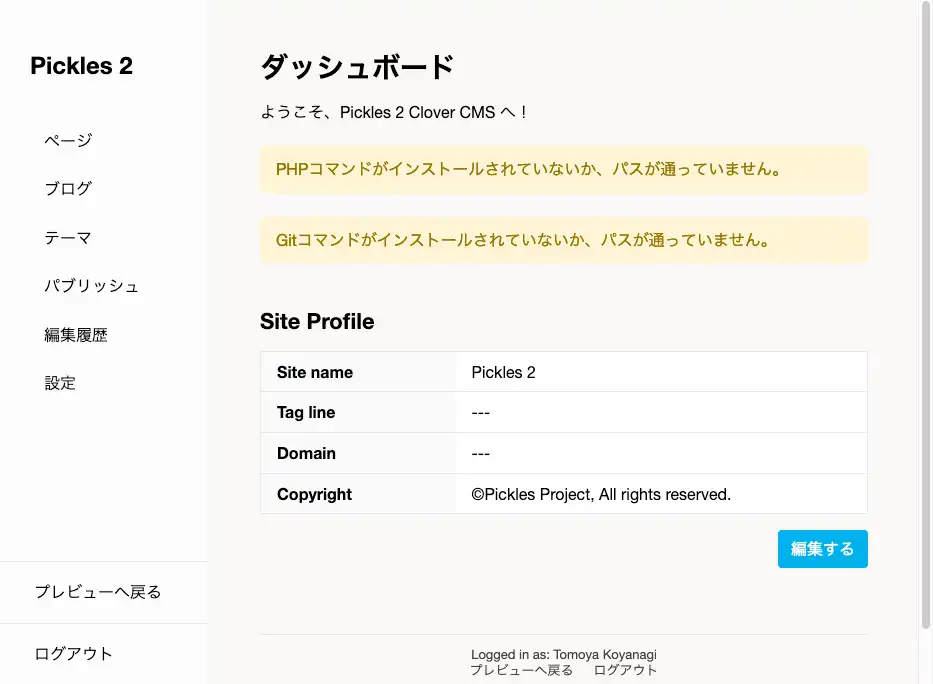 お疲れさまでした! ここまでの操作で、Pickles 2 を使い始める準備は整いました。