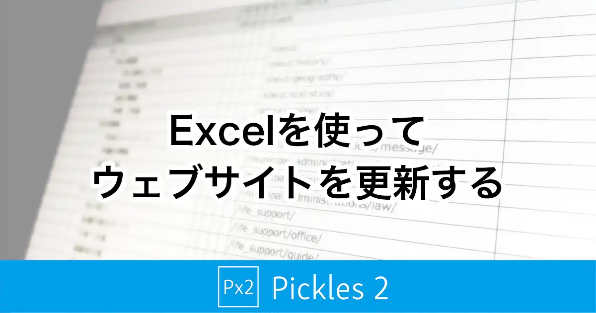 インポート・エクスポートするのではなく、Pickles 2 が Excelファイルを直接読み込んで、ウェブサイトの構成に反映するもので、ページやブログ記事の最新のリストが常に反映されたマスターファイルとしてアップデートされていきます。