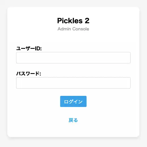 管理者ユーザーの作成に成功すると、続いてログイン画面が表示されます。先程作成した最初の管理者ユーザーのIDとパスワードを入力し、ログインしてください。